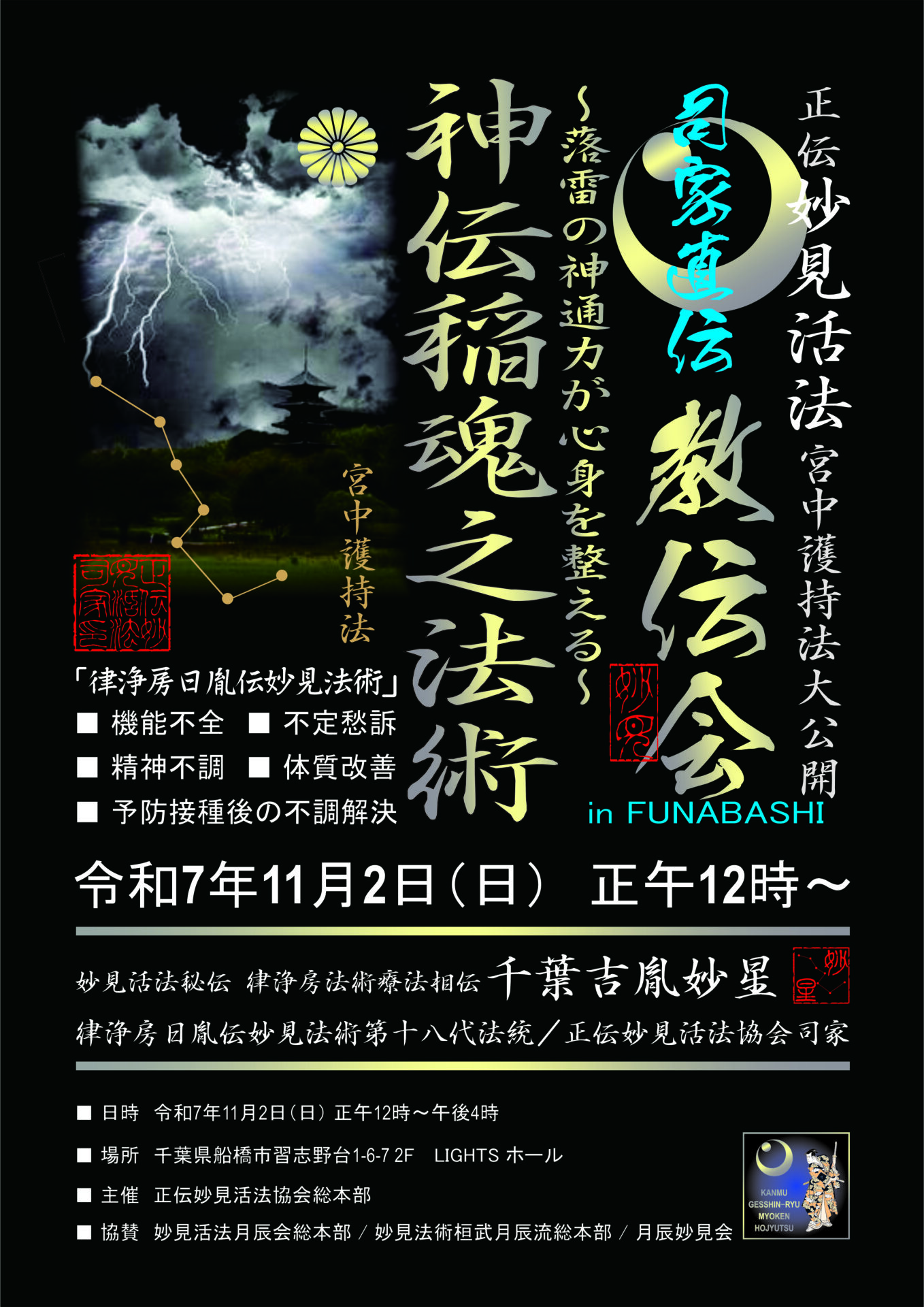 令和7年11月2日(日)に開催される教伝会では宮中護持法 律浄房日胤伝 北辰妙見法術 「神伝稲魂之法術」を初公開いたします